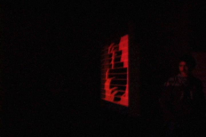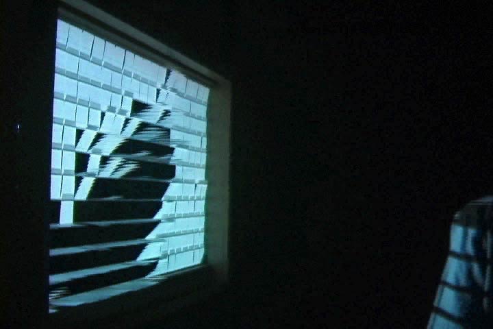 Windscreen is an experimental, wind-driven physical interface. My work as a media artist is broadly an investigation of synthetic spatial experience. I use synthetic in the bio(zoo)logical sense- as a structure "usually found in discrete genera, species, or higher groups". For me, this is a conceptual space that allows for cross- fertilization across historical, cultural, and material natures. Despite the many prototypes for "interactive space", it is painfully clear (especially to artists themselves) that even the most advanced sensing-actuation loops are actually very low bandwidth- compared to bodily immersion in a space, for example (noted by David Rokeby and others). Any physical scale habitable by the human body is also "inhabited" by massive levels of sensory data, equivalent to thousands of analog-to-digital inputs a second. My response, in an installation context, was to look for alternative modes of sensing, other energetic or eloquent forces. After all, interactivity does have a long history of means- beyond computing, electronics or even electricity. This experimental approach became an installation work that I call windscreen. Here, much technology was wilfuly discarded, and replaced with a singular, anomalous force - wind. Wind has a checkered history in the arts, Kinetic art and wind-driven "yardart" being well known examples. In the "media arts', it has been intremittenty used, most often metaphorically. I wanted to project this natural force into an imminent future- of "artificial" environments and experiences. In windscreen, wind is no longer a chance vector determined by atmospheric conditions. It is a deliberate environmental act, a sensor and actuator rolled into one. In this work the "virtuality" of a moving projection is made to collide with the physicality of a fluttering surface. A “user” controls this almost physical image by body-blocking the wind. In an inexact way, since the wind-shadow is much less precise than a light shadow. Yet, the relationship is immediate enough to engage the user, who in turn becomes implicated in the image/frame, and is watched by the rest of the audience. The result, to me, was compelling proof that simple, low-tech methods could create effective interactive experience. Several people in the audience (at a gallery show in March 2002), felt that windscreen was an effective critique of the numerous motion tracking, “body shadow” projects that are a familiar sight in media art. > WINDSCREEN VIDEO 1:48 .quicktime windows media player. The projected image is a slowly moving sequence of hard edged color washes that fade into black at every loop. I chose the colors of human races, ie. white black brown yellow red and blue (from the blue men!), because the user would get "painted" a certain color when the projection got through. This a sustained, slowly shifting color field that brings out the detail of the "pixel" action. The visual and auditory effect is a bit like a Rothko being gently slashed over and over- and you see the perpetrator in the back being splattered with its blood. :) The space of windscreen is filled with other (anachronistic?) associations. One person told me it felt like walking past a seaside window in Greece with the blinds moving in the breeze (clearly a personal view). In this case, the sound- a straightforward product of the mechanics and materials of the piece- was an important trigger. Other people saw “pixels” and early computer art in the screen, and atleast one person was seen blowing air into his own wind-shadow. To me, that is a clear goal of interactivity, the conflation of human and “machine” behavioural systems. INSTALLATION DIAGRAM: The context of this piece