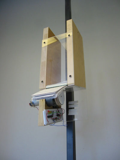 Remote self-powered paper dispener. Receives RF signals from sensing circuit. Uses 5v motor.